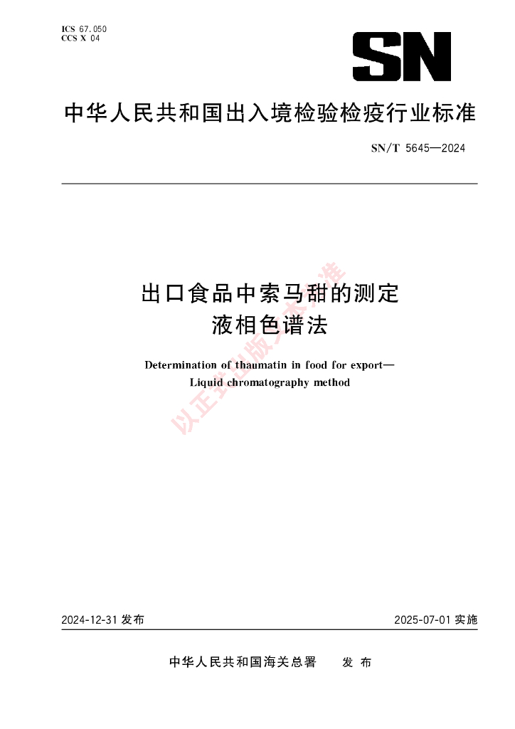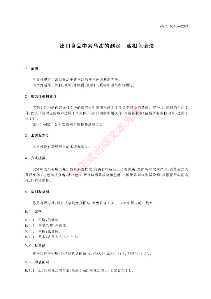 SN/T 5645-2024 出口食品中索马甜的测定 液相色谱法