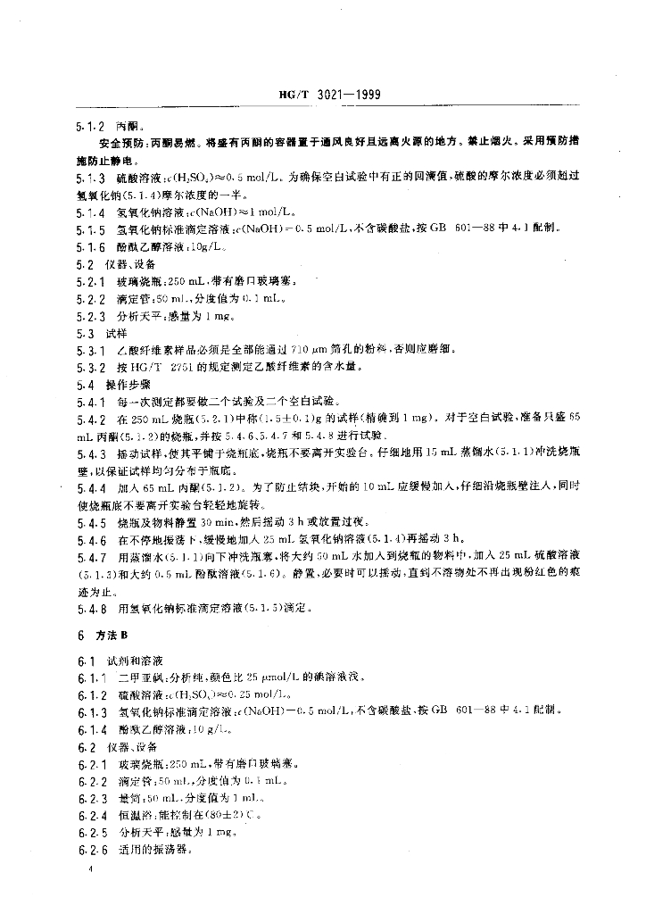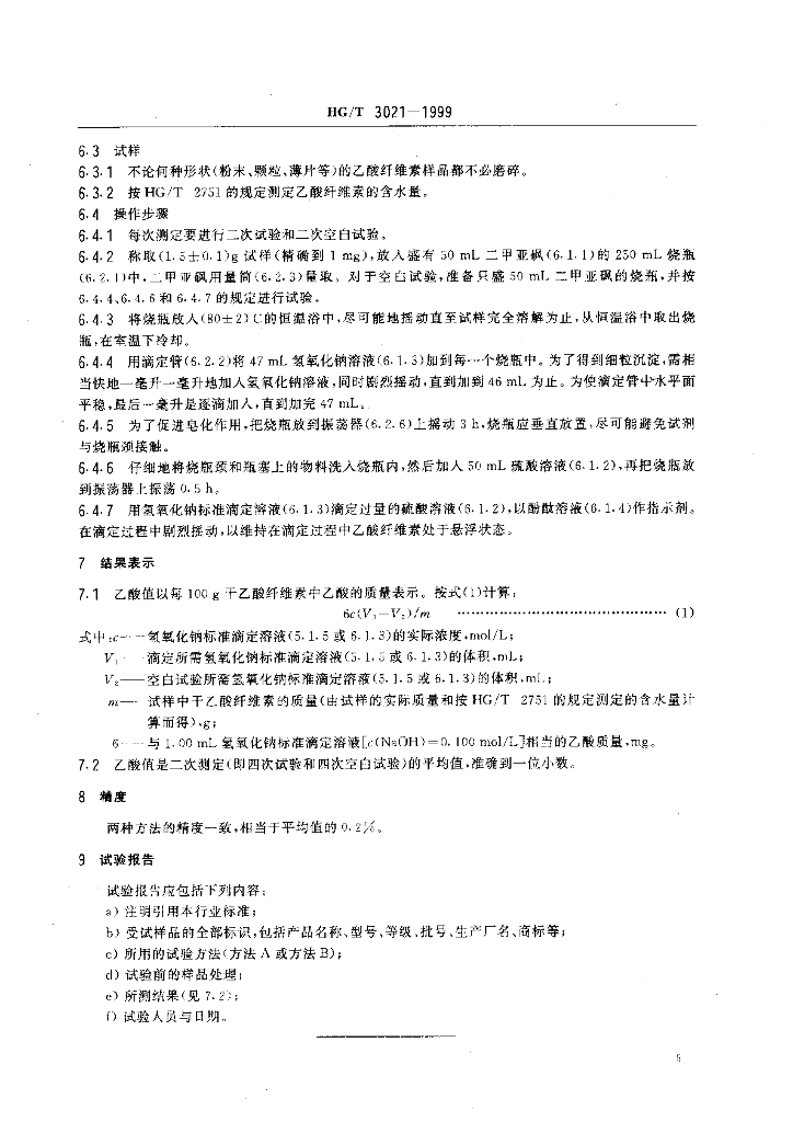 HG/T 3021-1999 未增塑乙酸纤维素水解乙酸值的测定