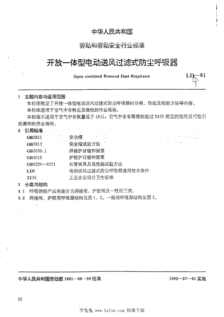 LD 7-1991 开放一体型电动送风过滤式防尘呼吸器