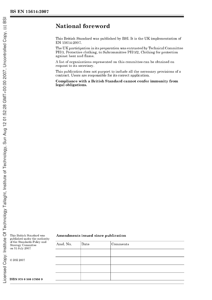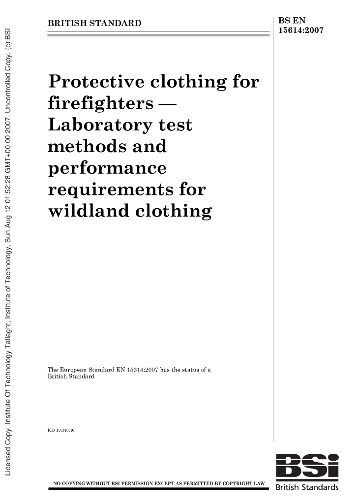 BS EN 15614-2007 Protective clothing for firefighters—Laboratory test methods and performance requirements for wildland clothing