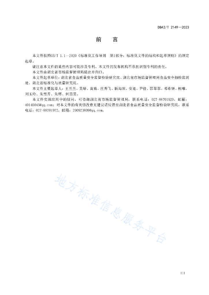 湖北省食品质量安全监督检验研究院、湖北省市场监督管理局食品安全抽检监测处、湖北省标准化与质量研究院