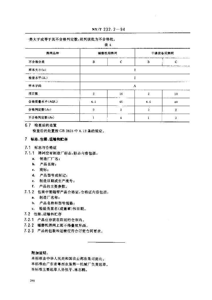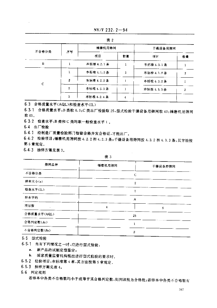 NY/T 232.2-1994 制胶设备基础件 筛网