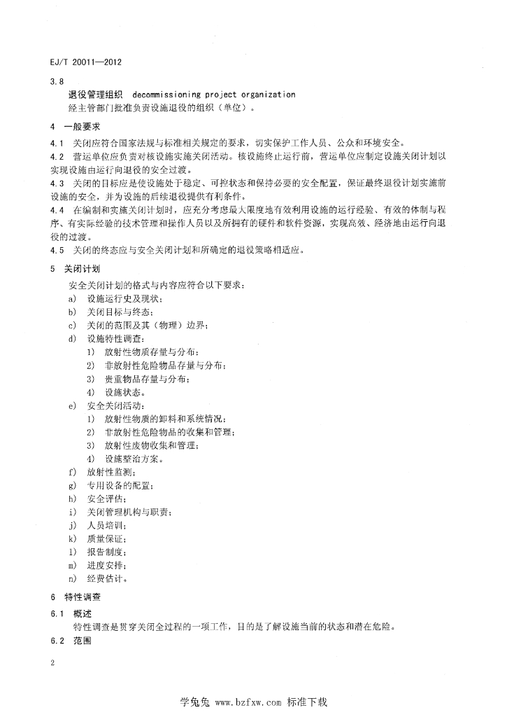 EJ/T 20011-2012 核设施安全关闭