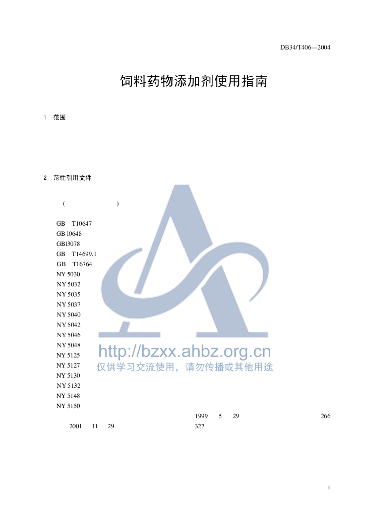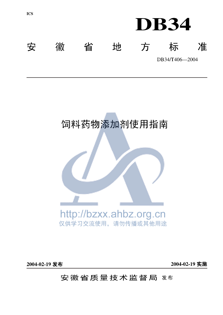 DB34/T 406-2004 饲料药物添加剂使用指南