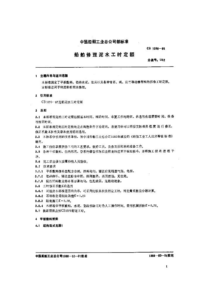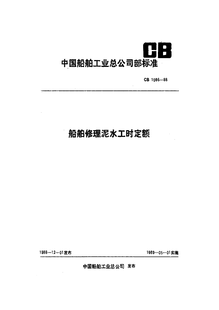 CB 1096-1988 船舶修理泥水工时定额