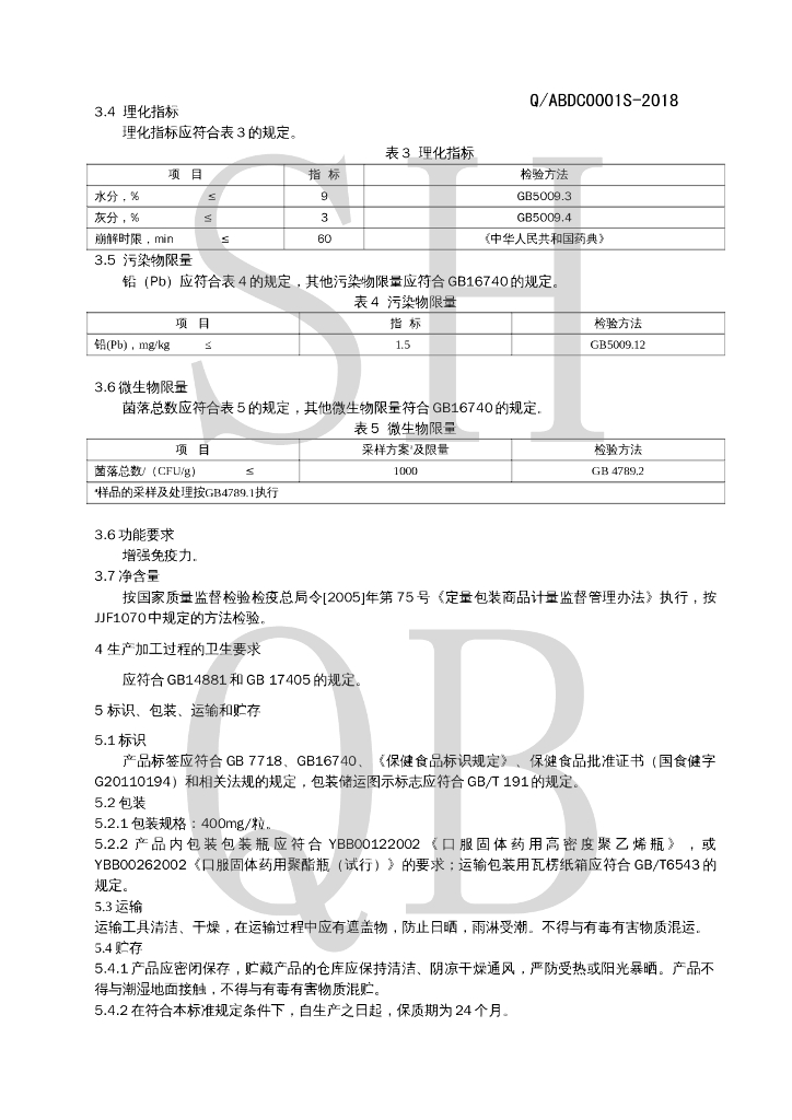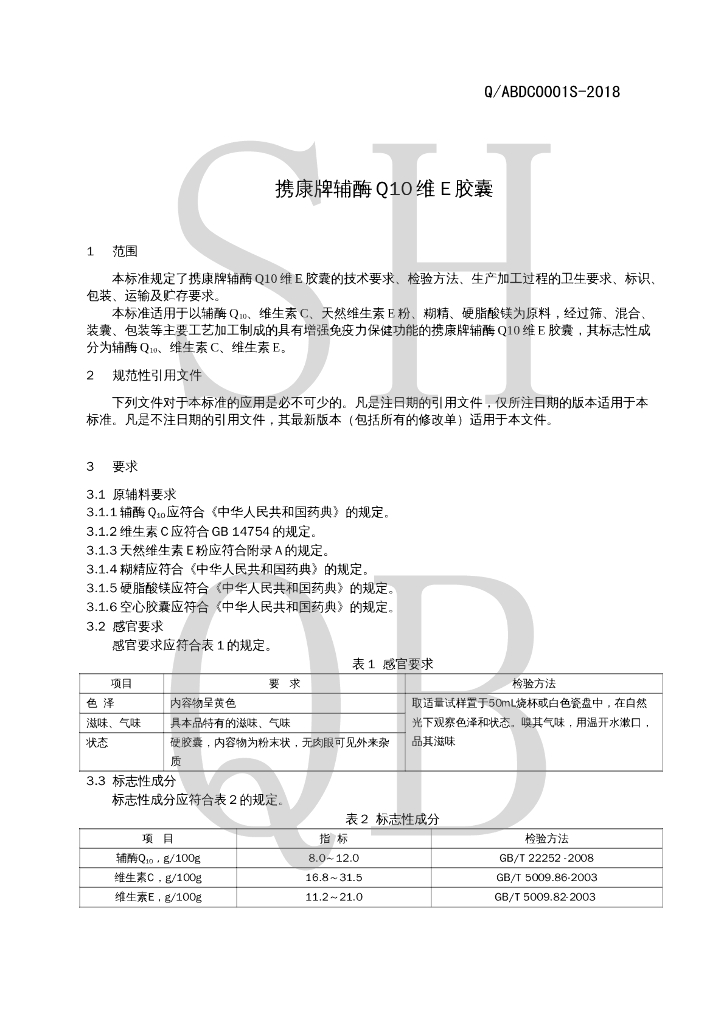 Q/ABDC 0001S-2018 携康牌辅酶Q10维E胶囊