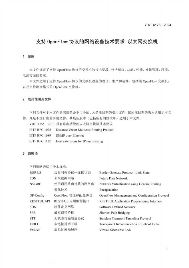 YD/T 6175-2024 支持Openflow协议的网络设备技术要求 以太网交换机