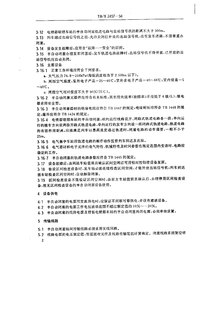 TB/T 2497-1994 铁路半自动闭塞技术条件