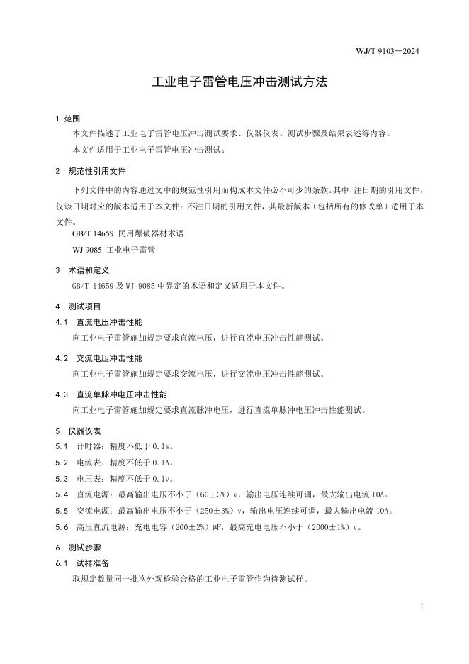 WJ/T 9103-2024 工业电子雷管电压冲击测试方法