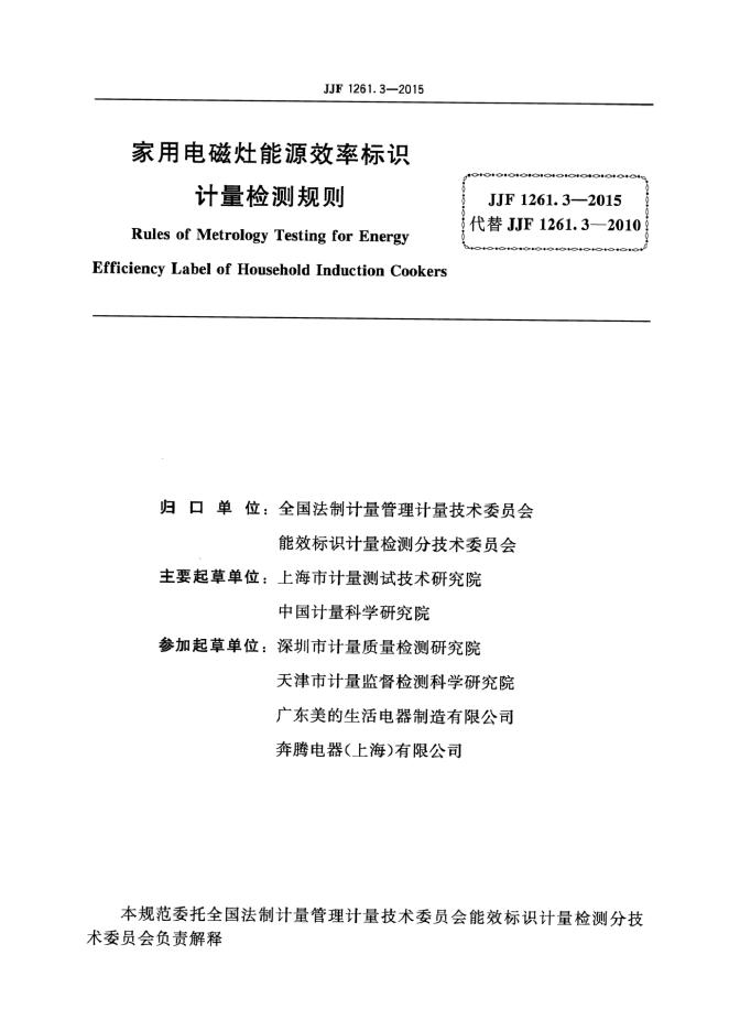 上海市计量测试技术研究院、中国计量科学研究院、深圳市计量质量检测研究院、天津市计量监督检测科学研究院、广东美的生活电器制造有限公司、奔腾电器(上海)有限公司