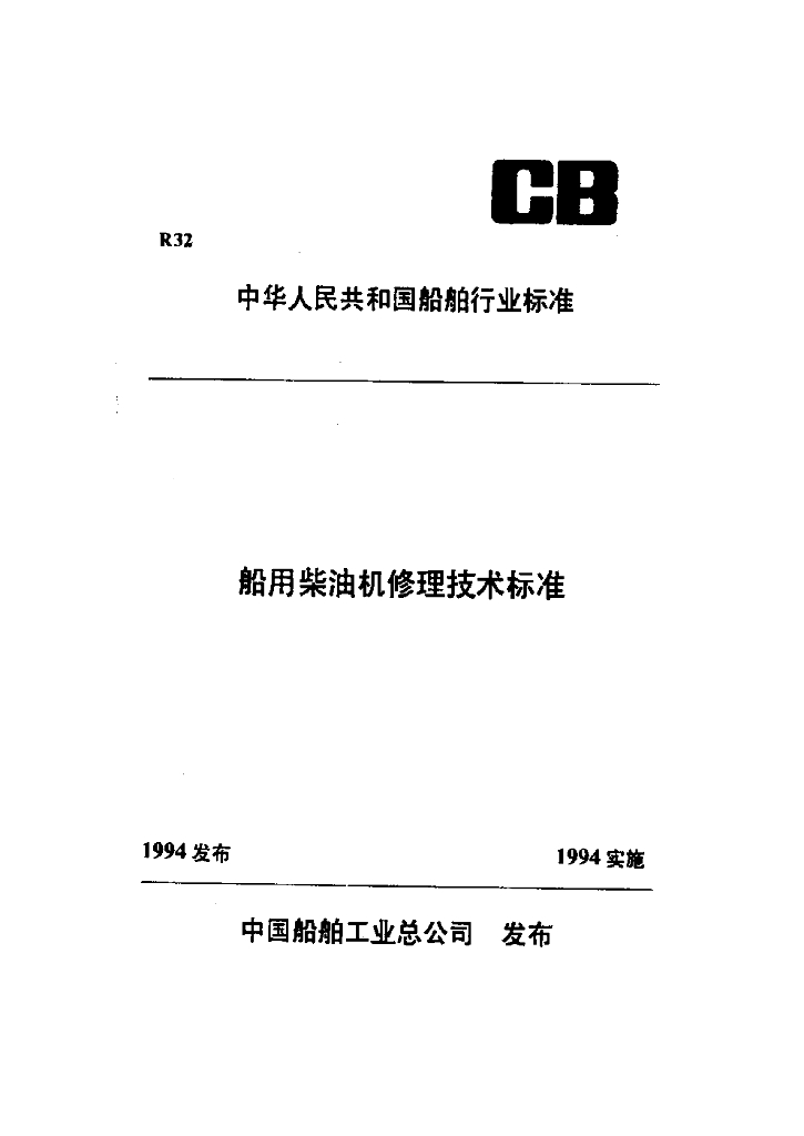CB/T 3533-1994 船用柴油机修理安装技术要求