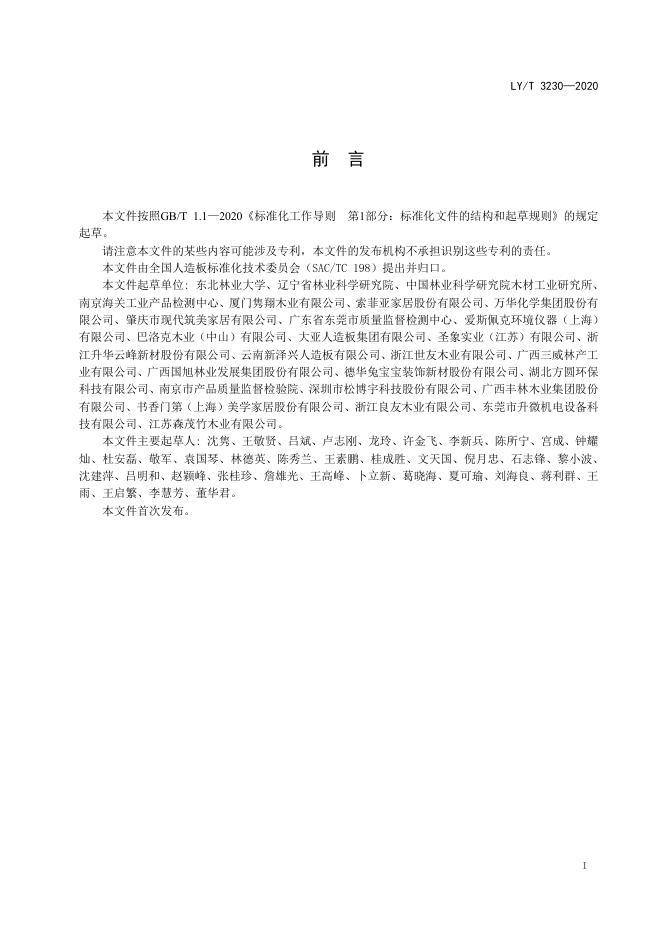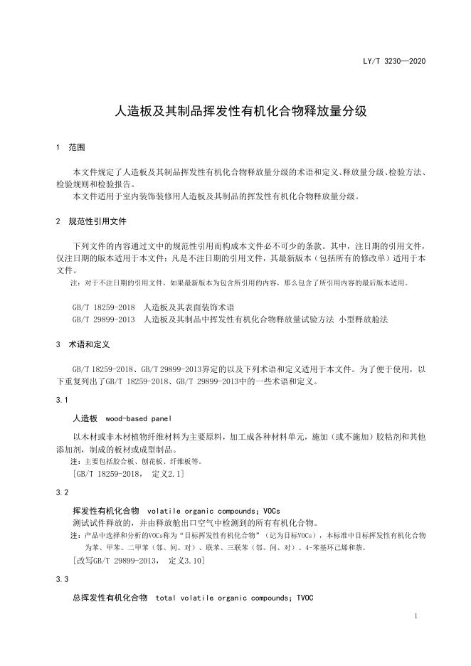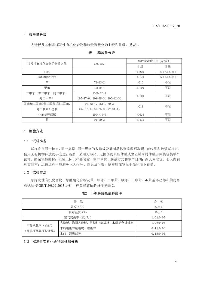 LY/T 3230-2020 人造板及其制品挥发性有机化合物释放量分级