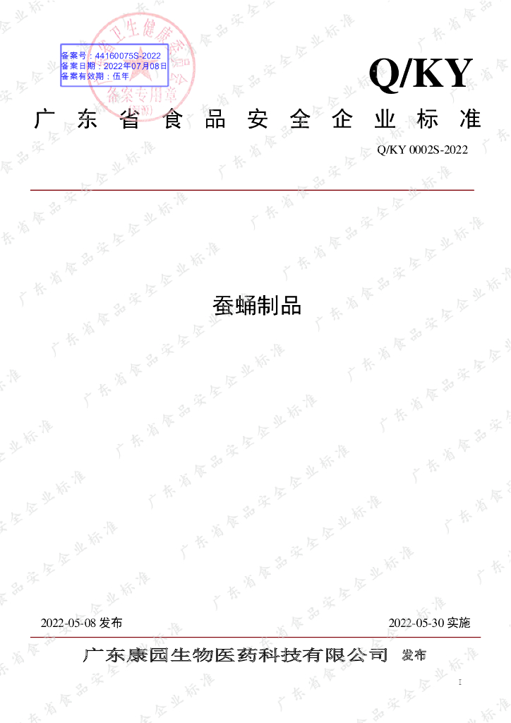Q/KY 0002S-2022 蚕蛹制品