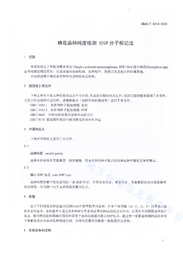 DB65/T 4316-2020 棉花品种纯度检测?SNP分子标记法