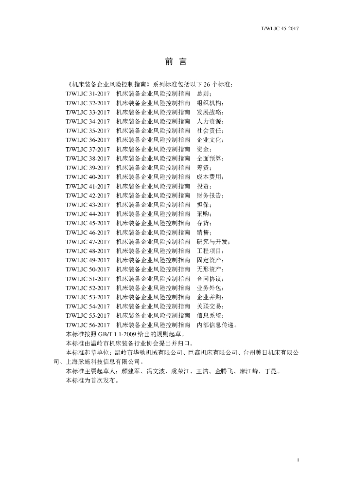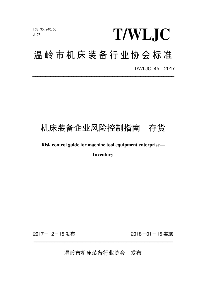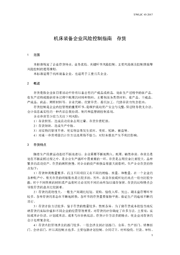 T/WLJC 45-2017 机床装备企业风险控制指南 存货