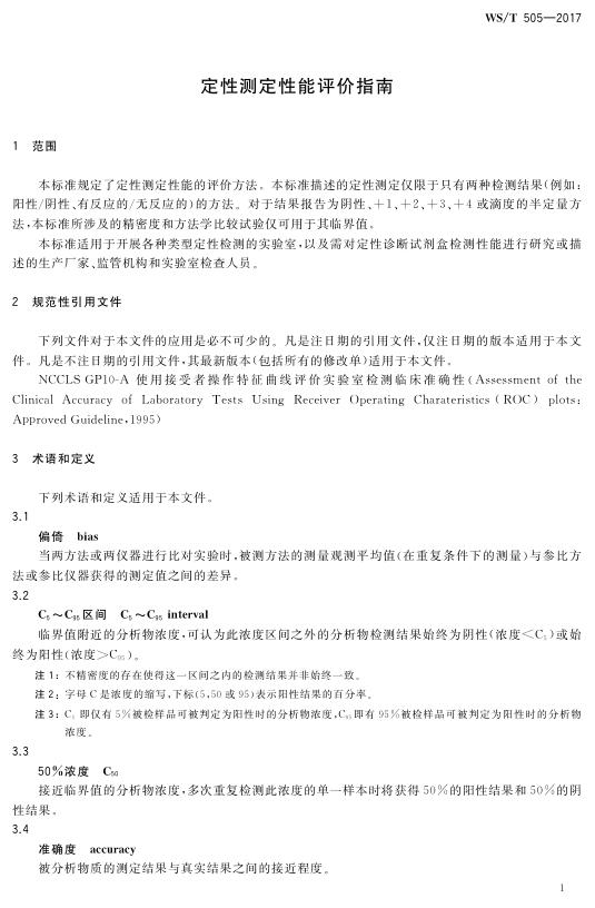 WS/T 505-2017 定性测定性能评价指南