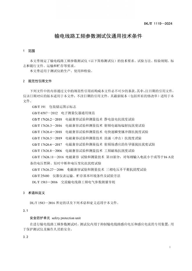 DL/T 1119-2024 输电线路工频参数测试仪通用技术条件