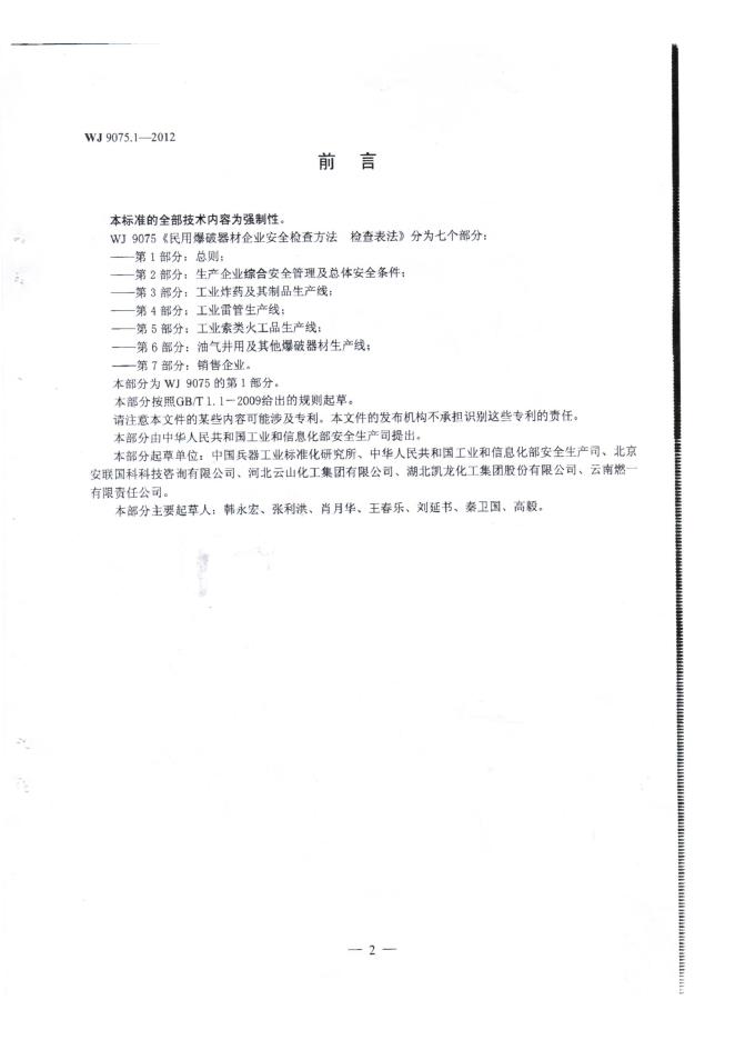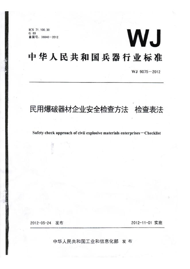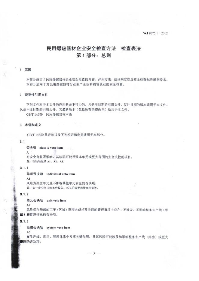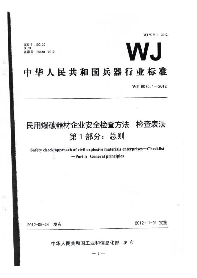 WJ/T 9075.1-2012 民用爆破器材企业安全检查方法 检查表法 第1部分:总则