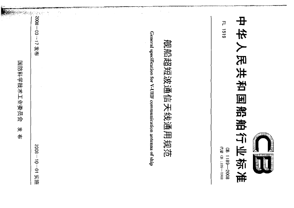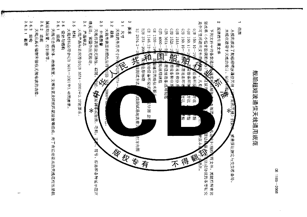 CB 1189-2008 舰船超短波通信天线通用规范