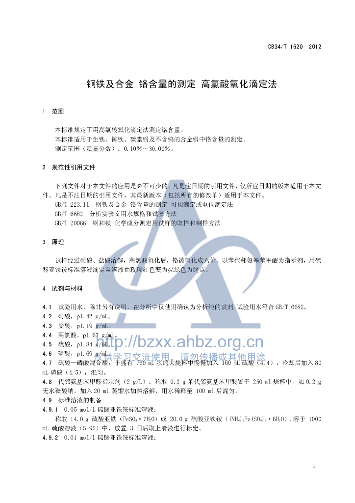 DB34/T 1620-2012 钢铁及合金 铬含量的测定 高氯酸氧化滴定法