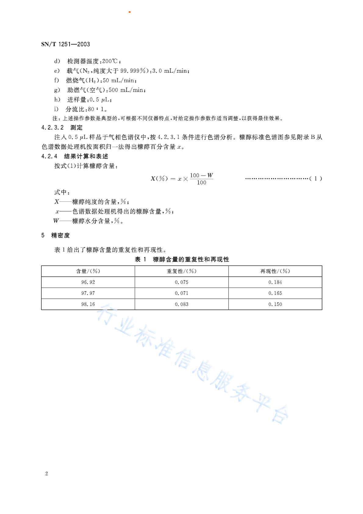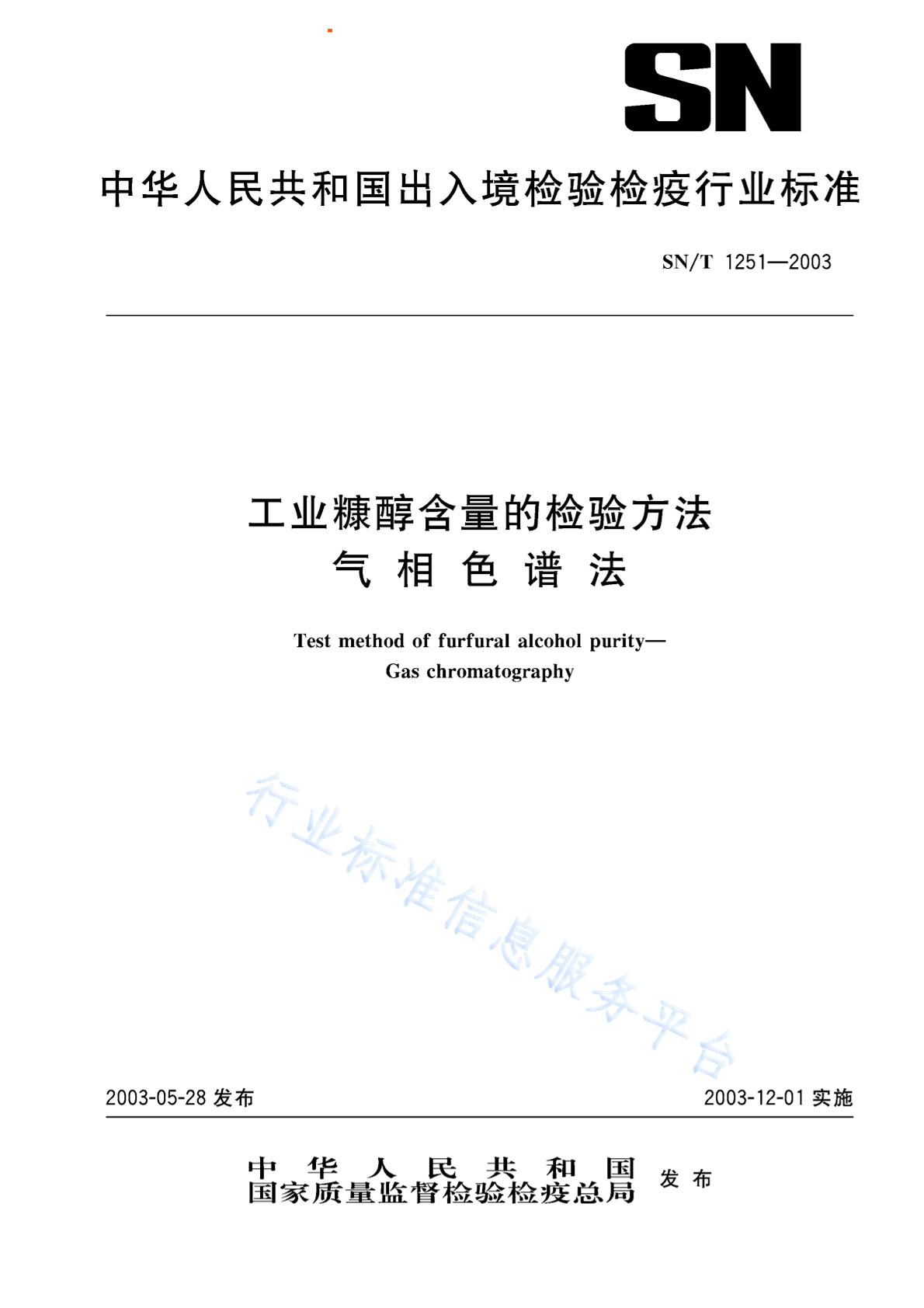SN/T 1251-2003 工业糠醇含量的检验方法 气相色谱法