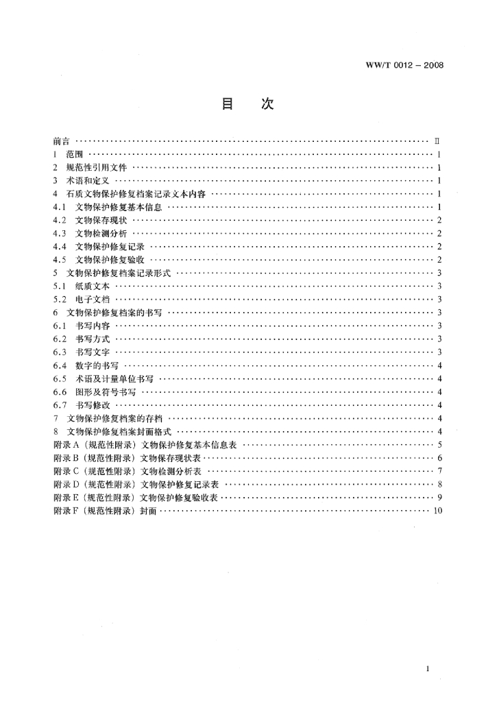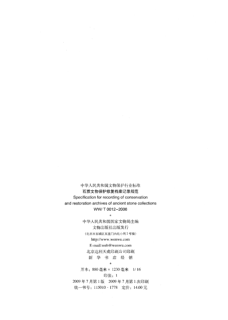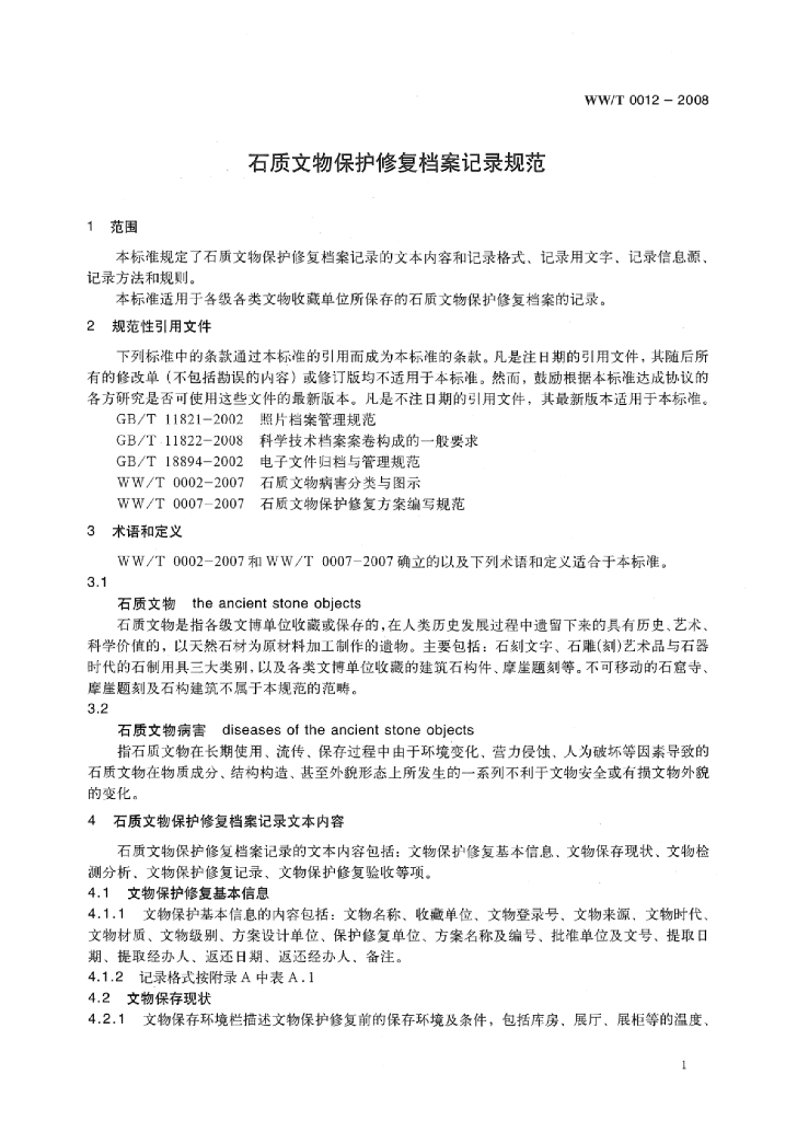WW/T 0012-2008 石质文物保护修复档案记录规范