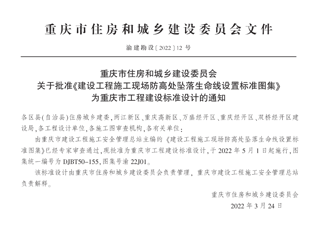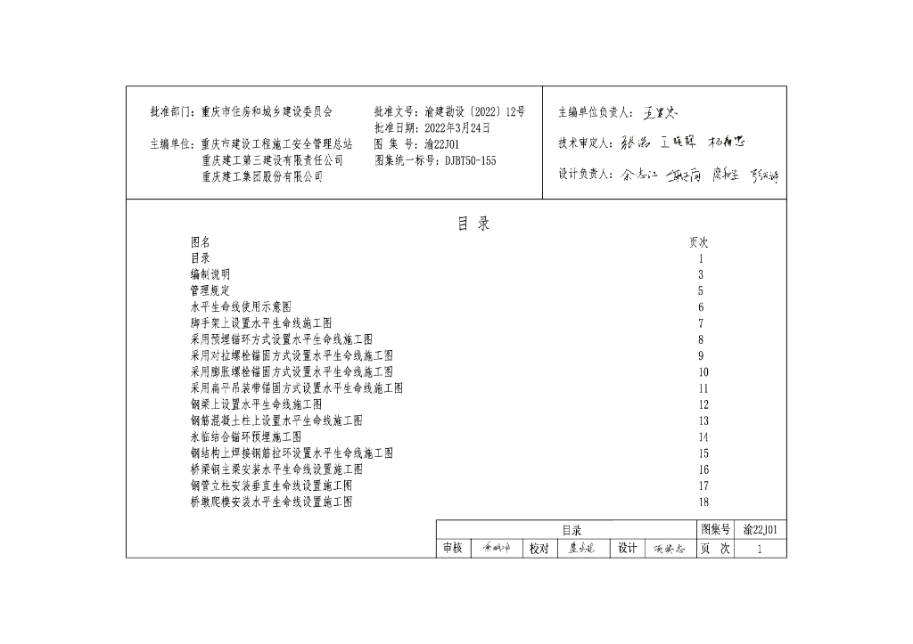 渝22J01 建设工程施工现场防高处坠落生命线设置标准图集(DJBT50-155)