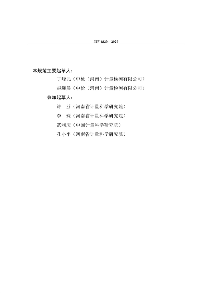 丁峰元(中检(河南)计量检测有限公司)、赵迎晨(中检(河南)计量检测有限公司)、许芬(河南省计量科学研究院)、李琛(河南省计量科学研究院)、武利庆(中国计量科学研究院)、孔小平(河南省计量科学研究院)
