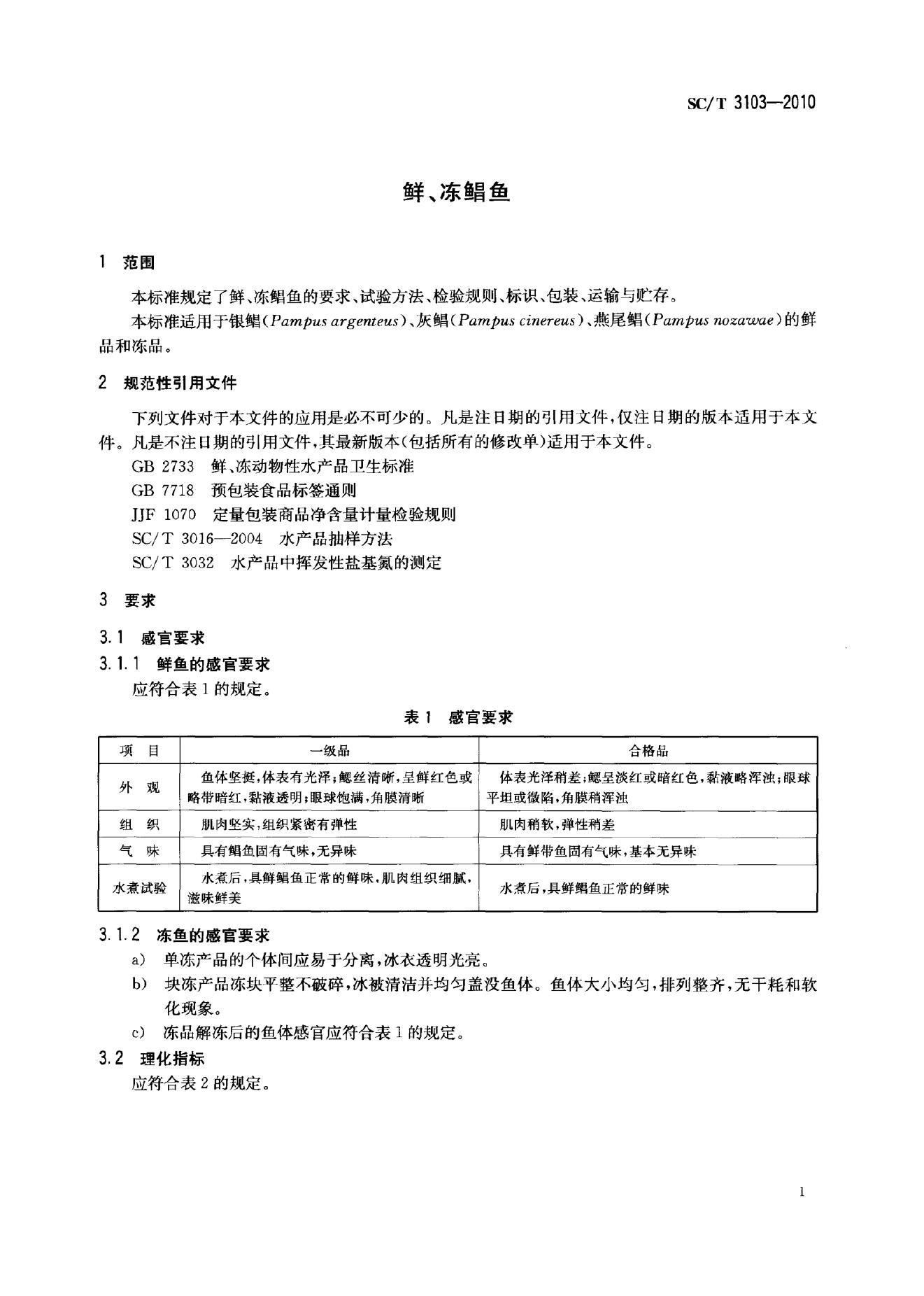 SC/T 3103-2010 鲜、冻鲳鱼