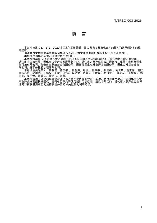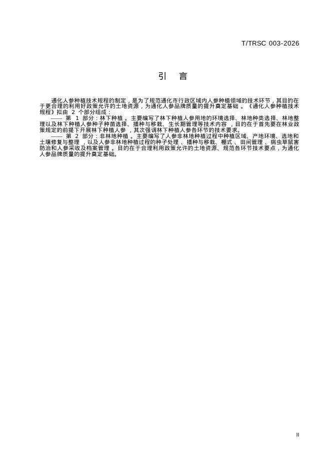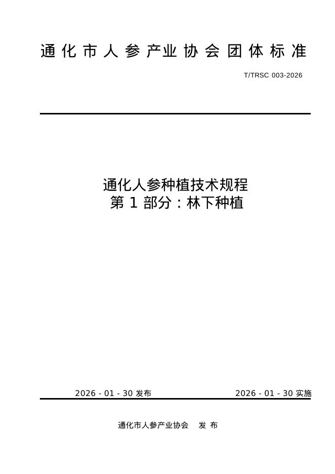 T/TRSC 003-2026 通化人参种植技术规程 第1部分:林下种植