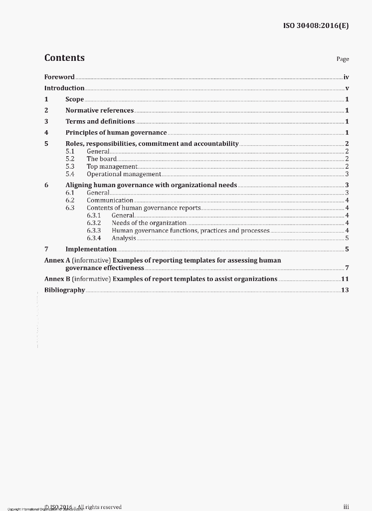 ISO 30408:2016(E) Human resource management-Guidelines on human governance