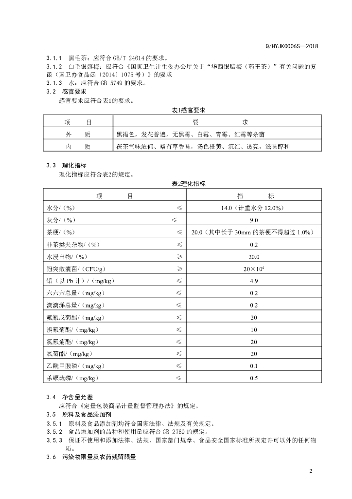 Q/HYJK 0006S-2018 白毛银露梅茯茶