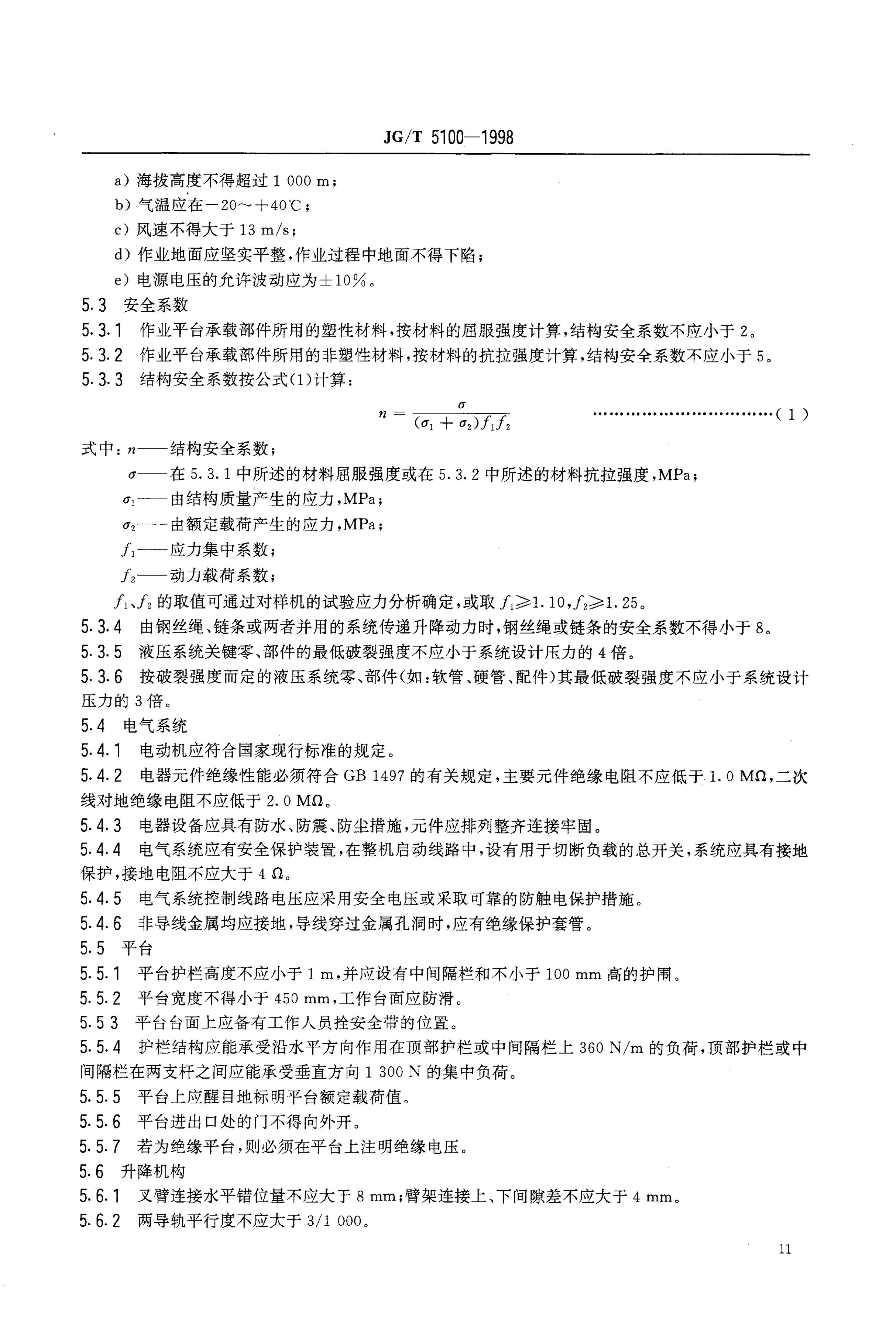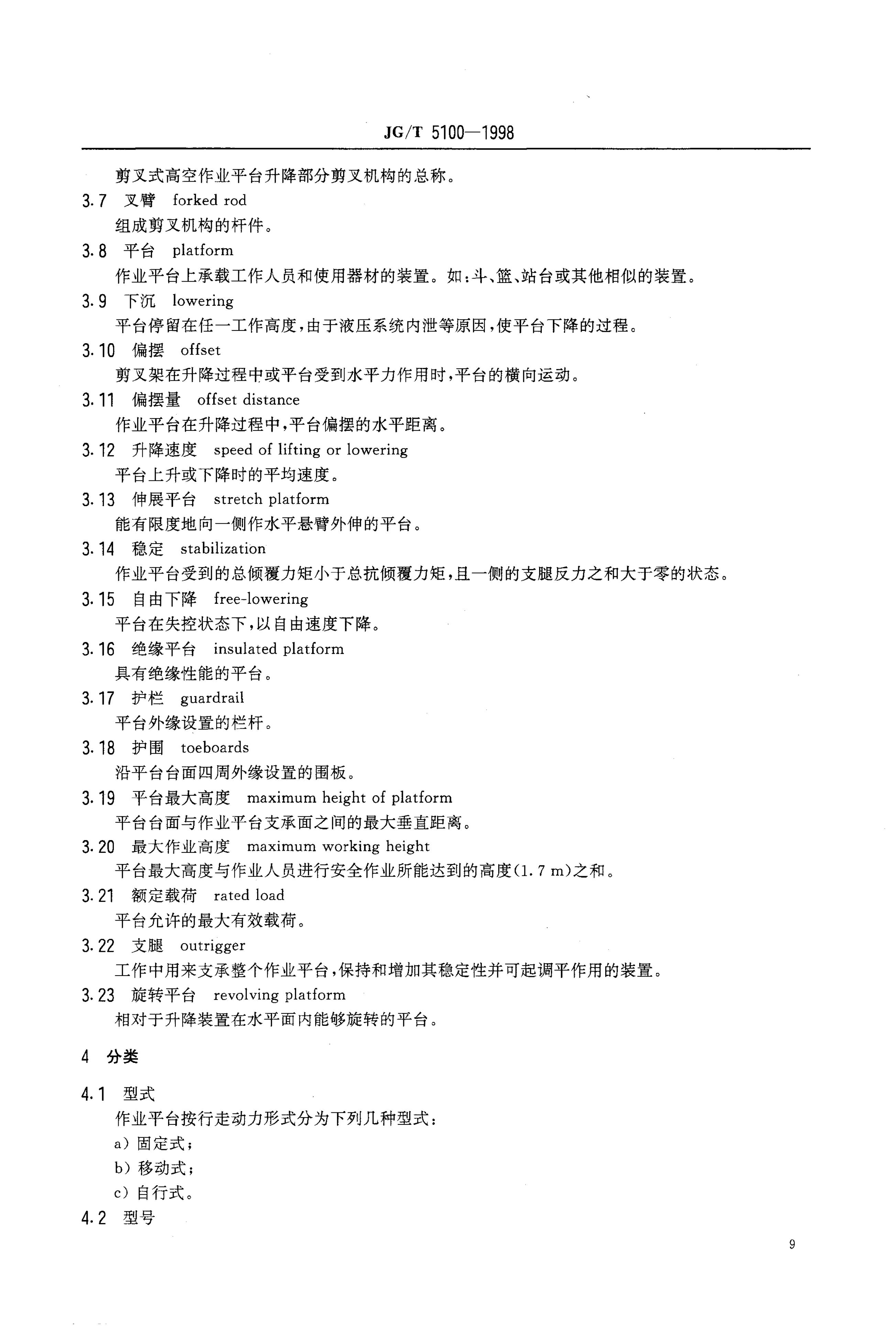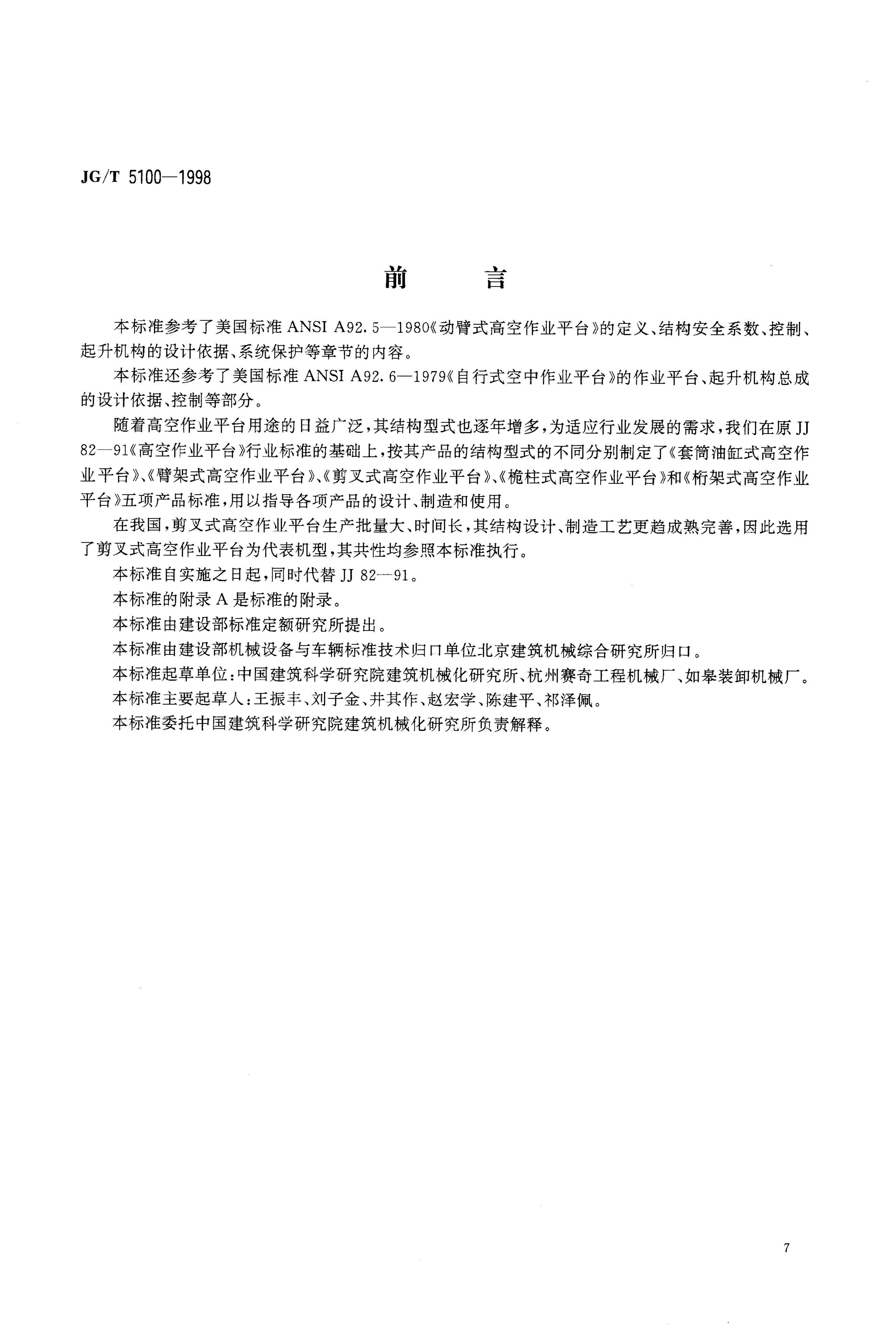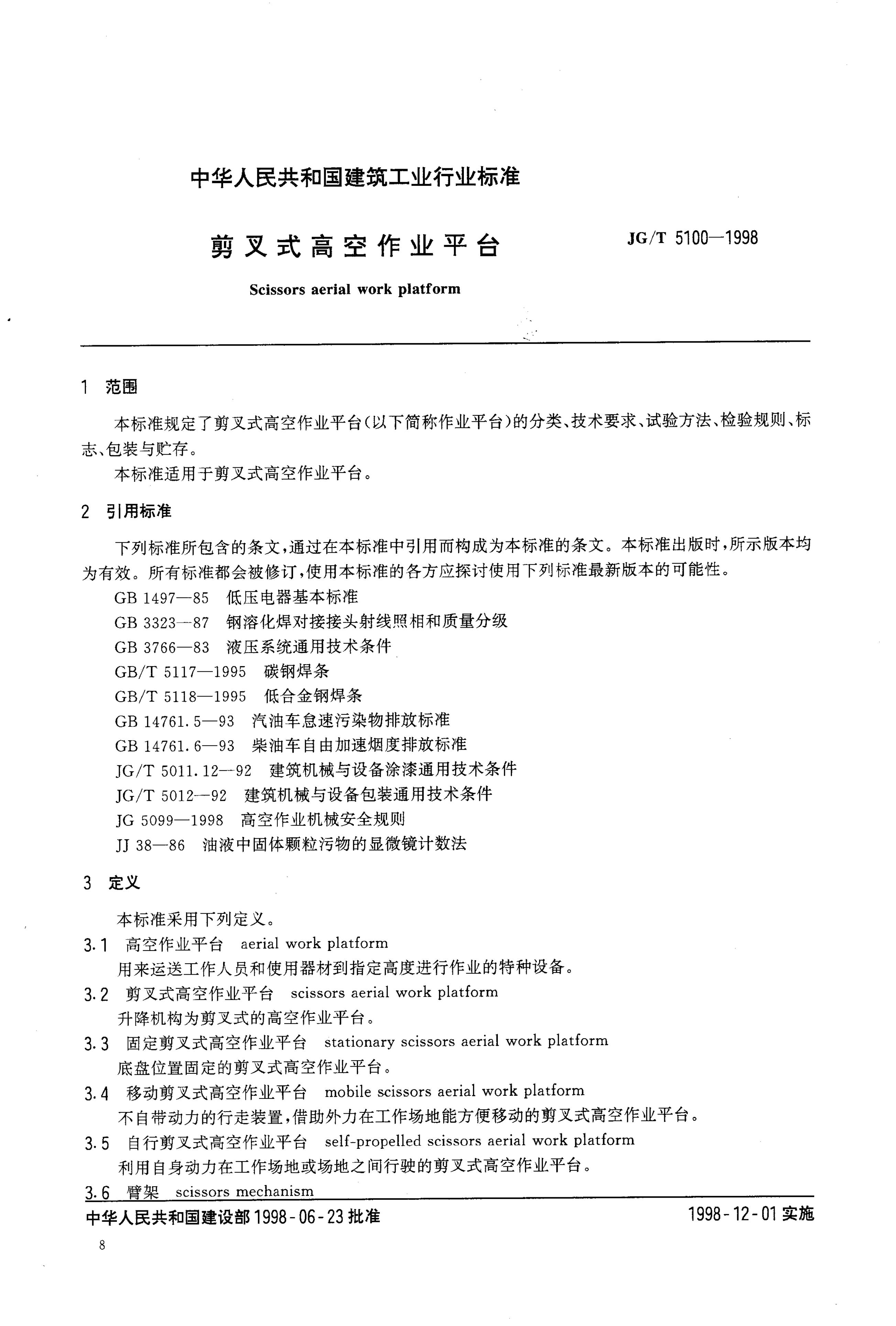 JG/T 5100-1998 剪叉式高空作业平台