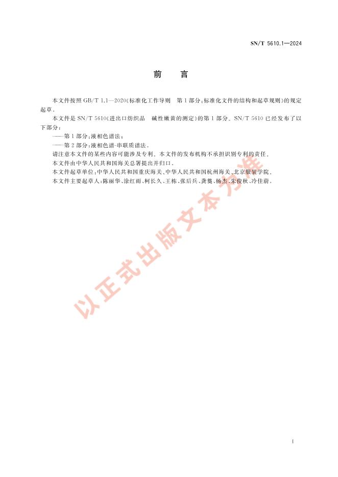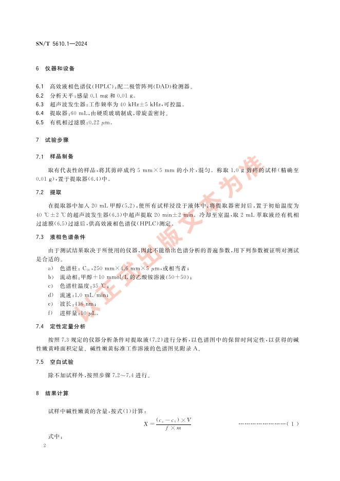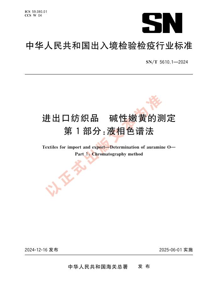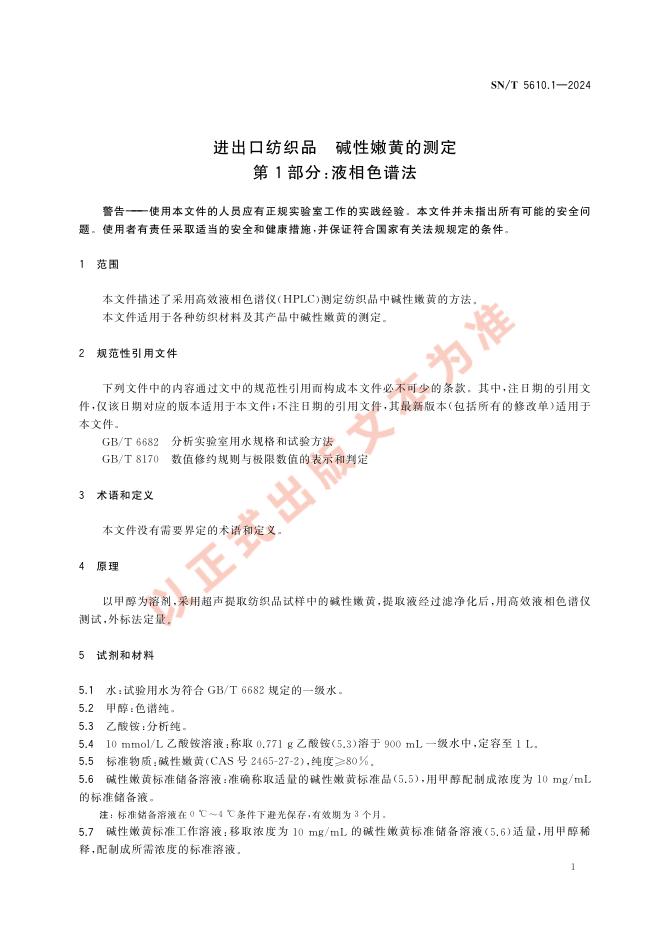 SN/T 5610.1-2024 进出口纺织品 碱性嫩黄的测定 第1部分:液相色谱法