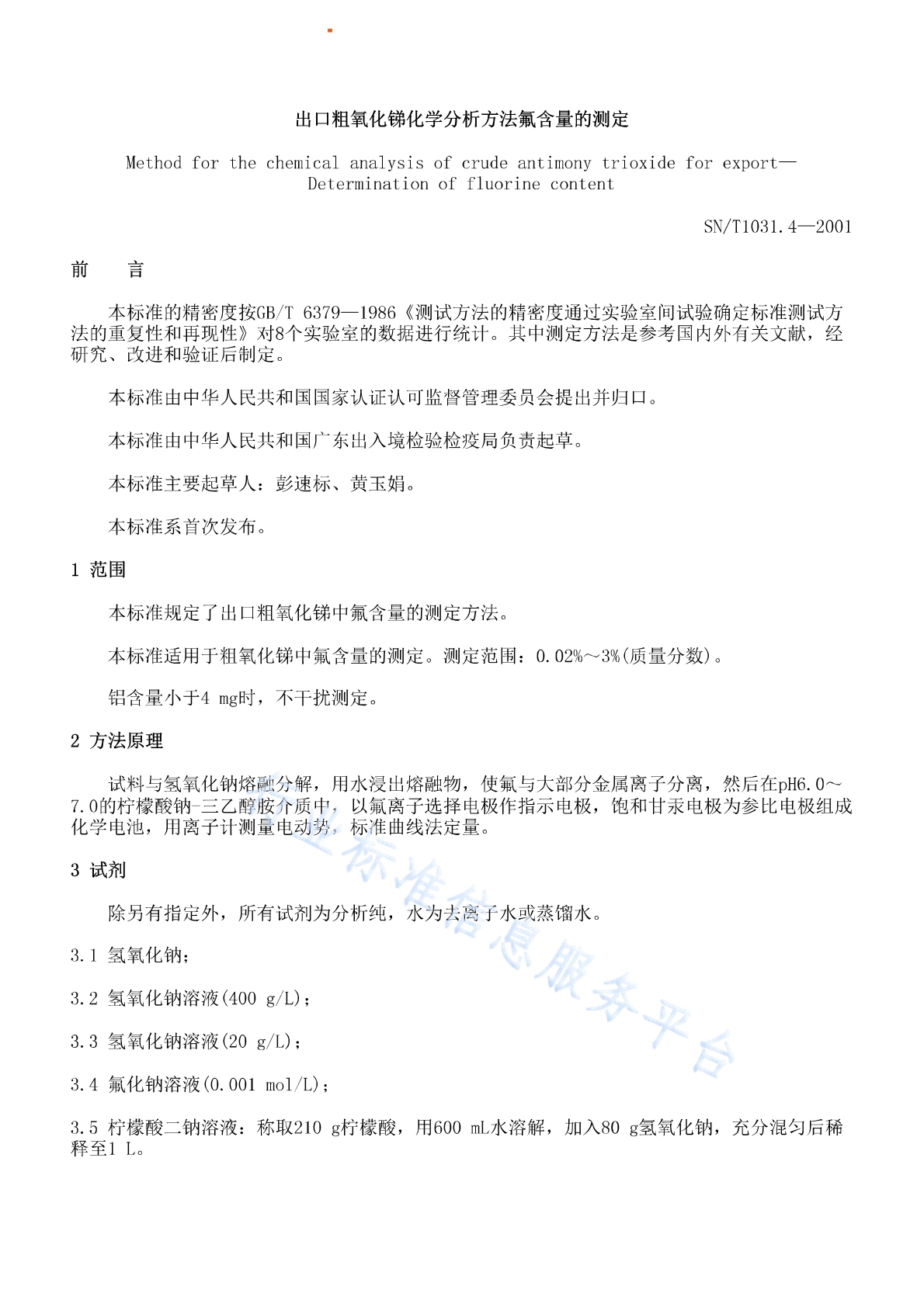 SN/T 1031.4-2001 出口粗氧化锑化学分析方法 氟含量的测定