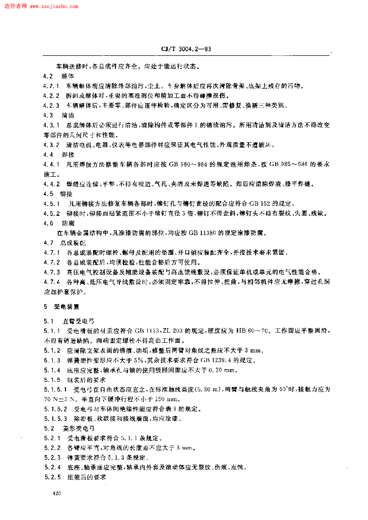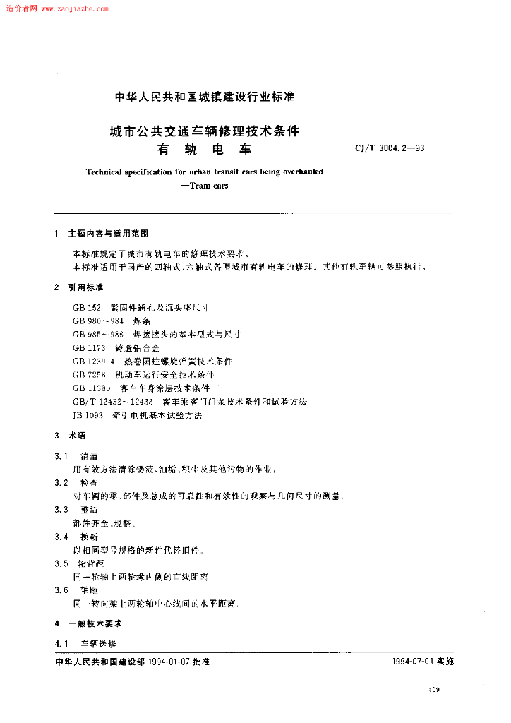 CJ/T 3004.2-1993 城市公共交通车辆修理技术条件 有轨电车规范