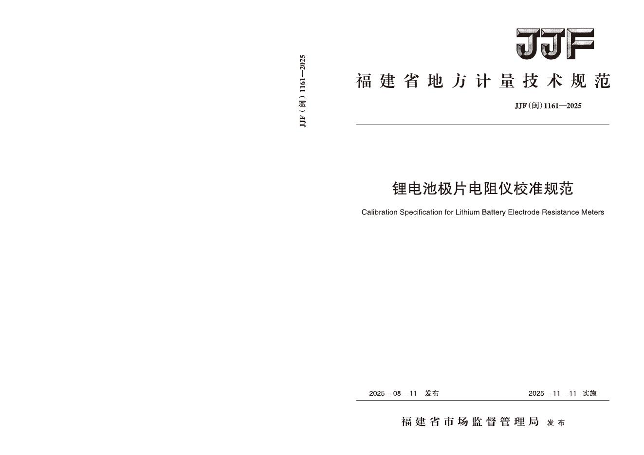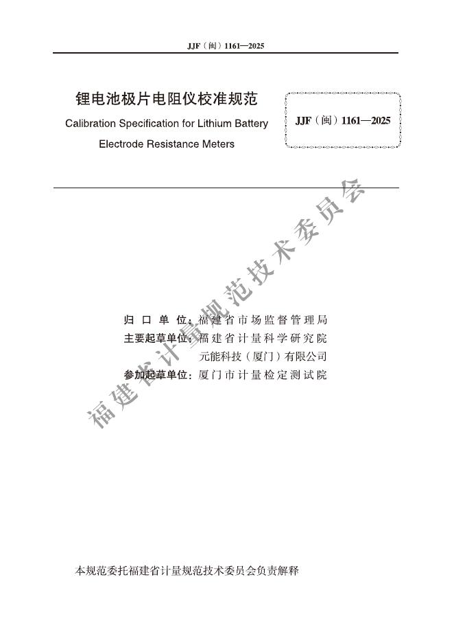 JJF(闽)1161-2025 锂电池极片电阻仪校准规范