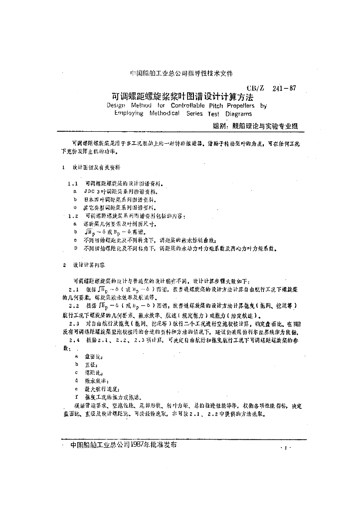 CB/Z 241-1987 可调螺距螺旋桨桨叶图谱设计计算方法