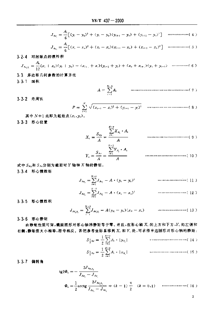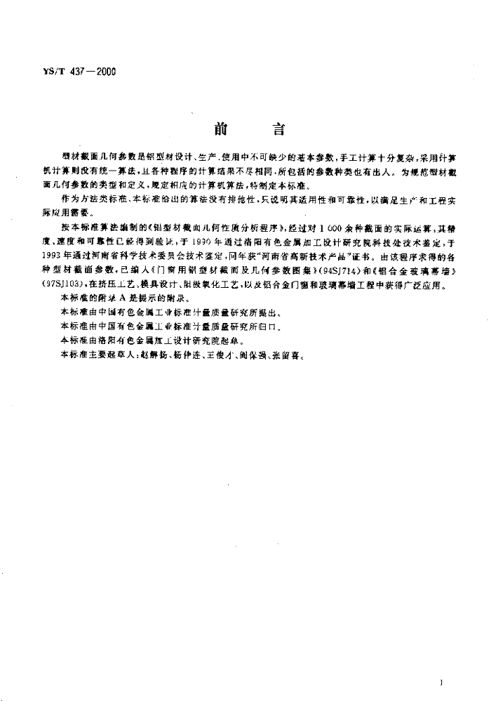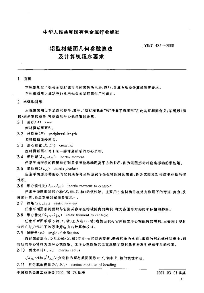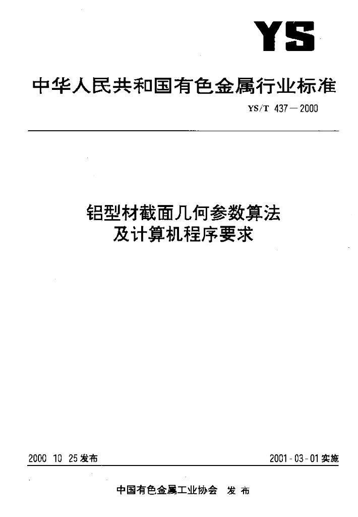 YS/T 437-2000 铝型材截面几何参数算法及计算机程序要求