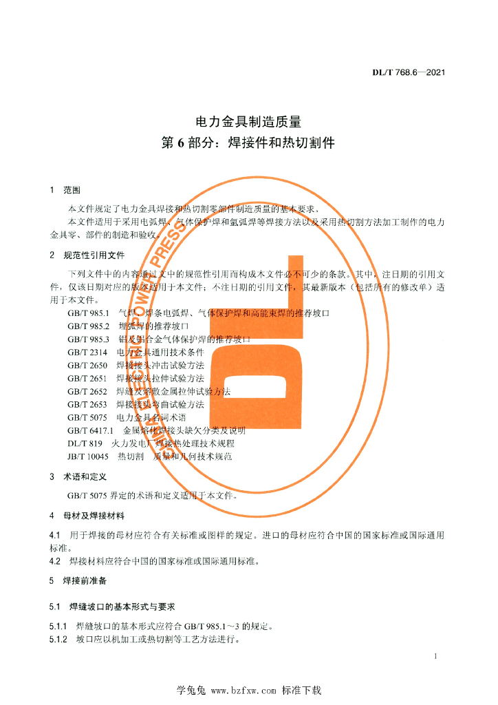 DL/T 768.6-2021 电力金具制造质量 第6部分:焊接件和热切割件