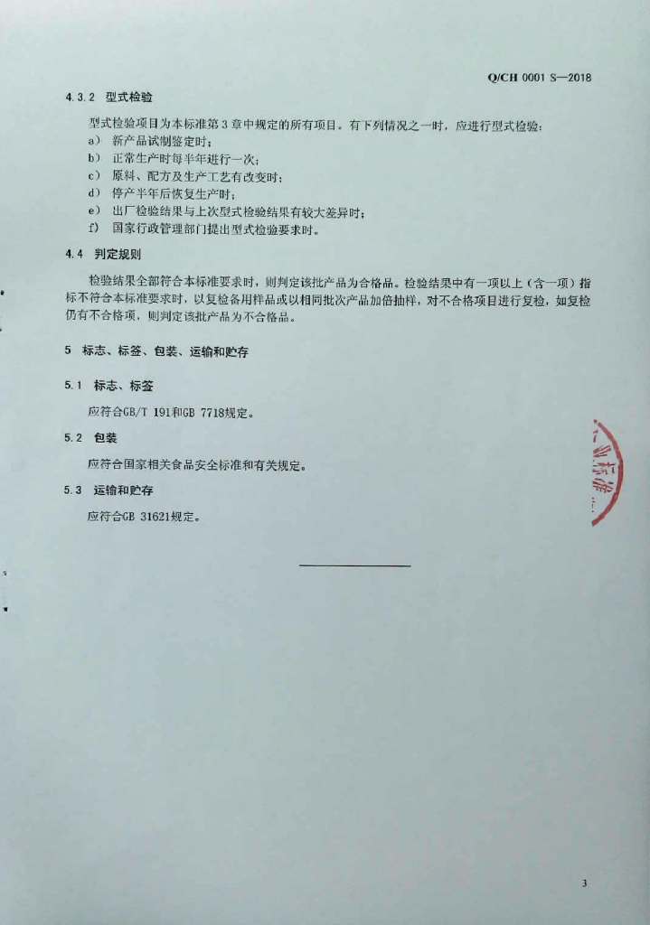 Q/CH 0001S-2018 大米制品
