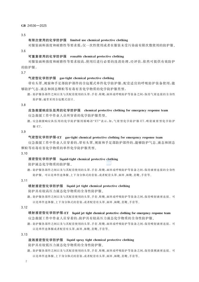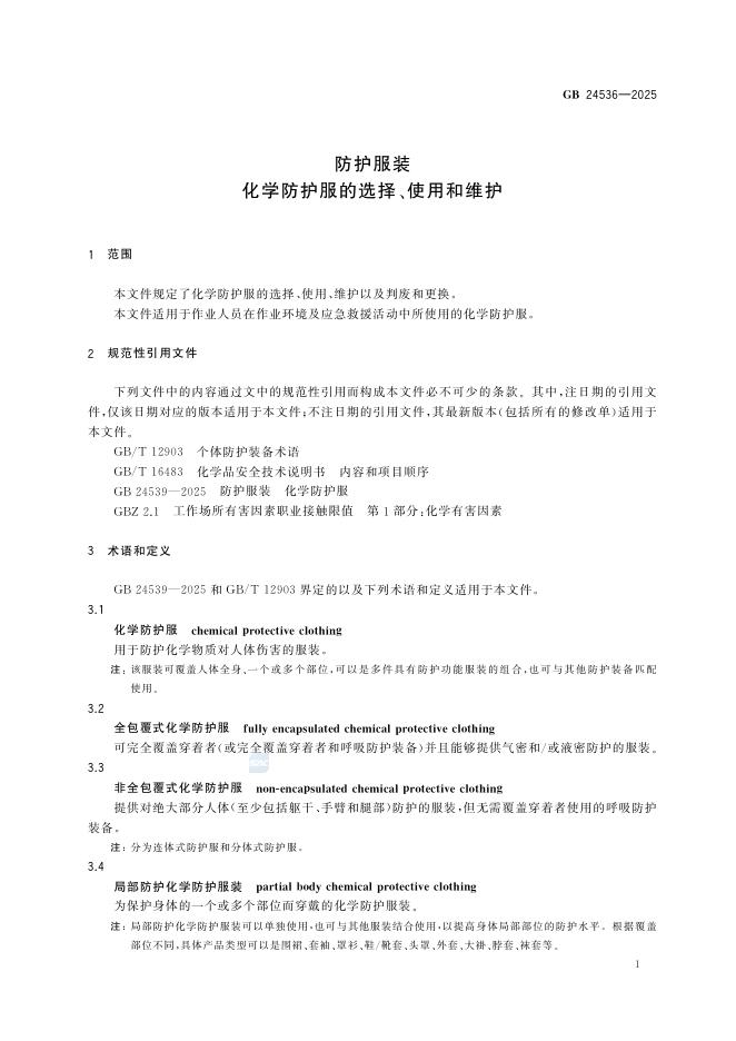 GB 24536-2025 防护服装 化学防护服的选择、使用和维护