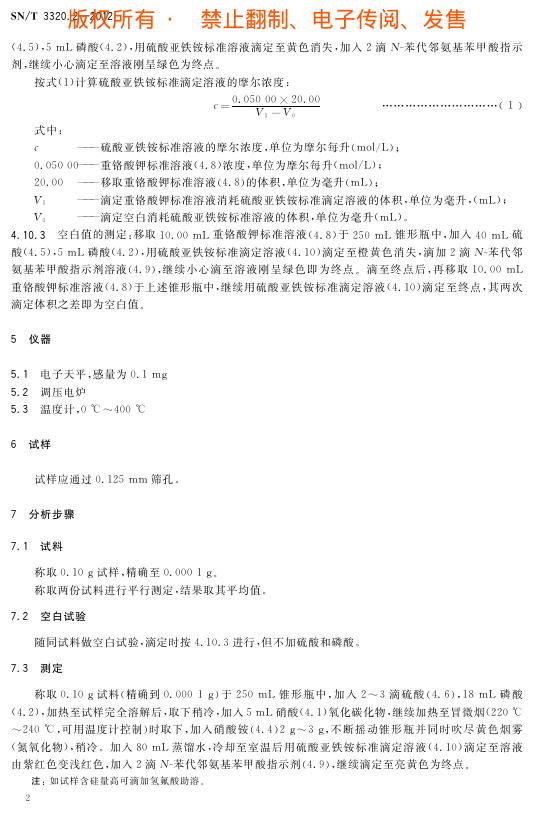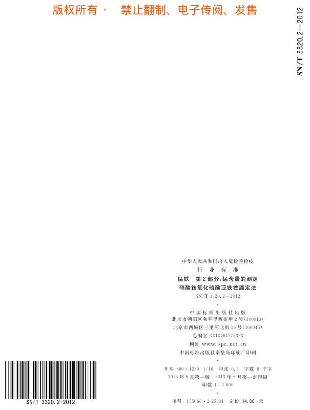 SN/T 3320.2-2012 锰铁 第2部分:锰含量的测定 硝酸铵氧化硫酸亚铁铵滴定法