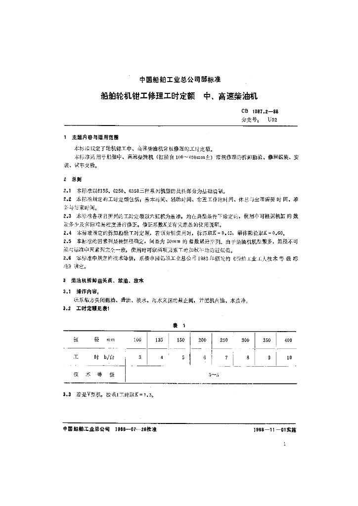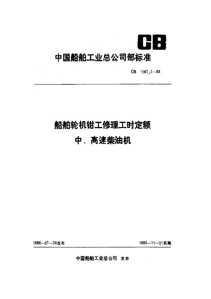 CB 1087.2-1988 船舶轮机钳工修理工时定额 中、高速柴油机