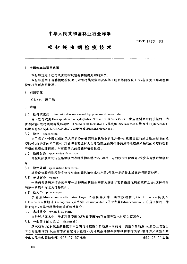 LY/T 1123-1993 松材线虫病检疫技术