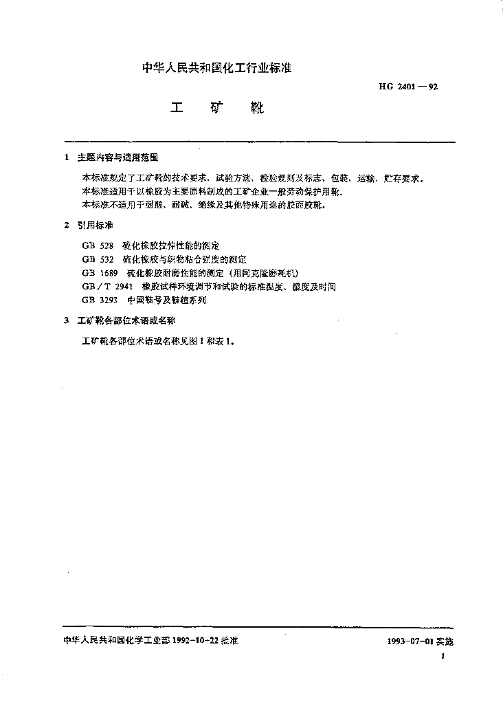 HG 2401-1992 工矿靴