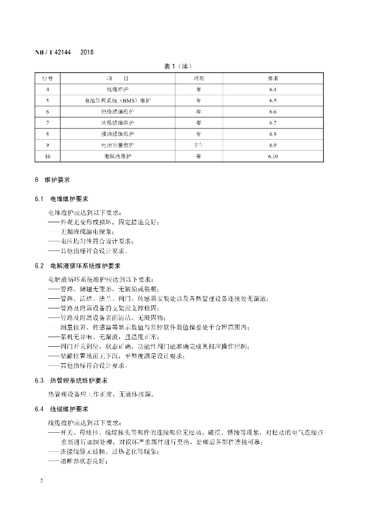 NB/T 42144-2018 全钒液流电池维护要求