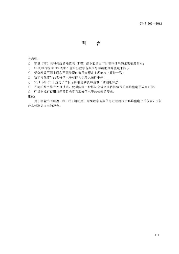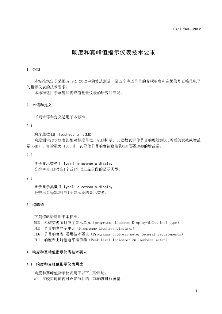 GY/T 263-2012 响度和真峰值指示仪表技术要求