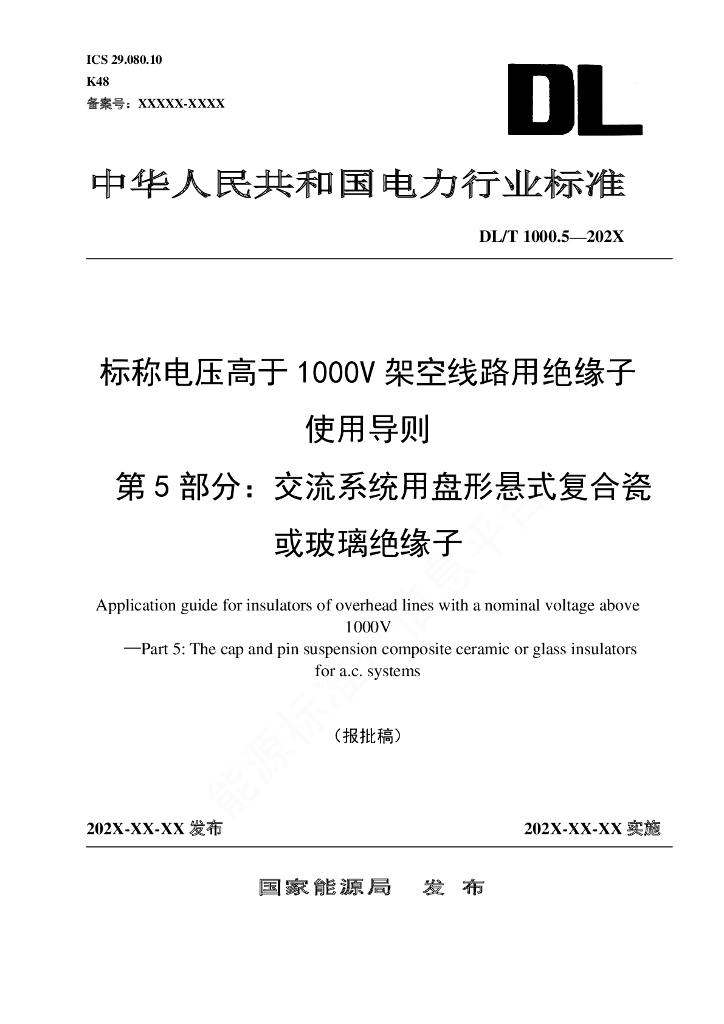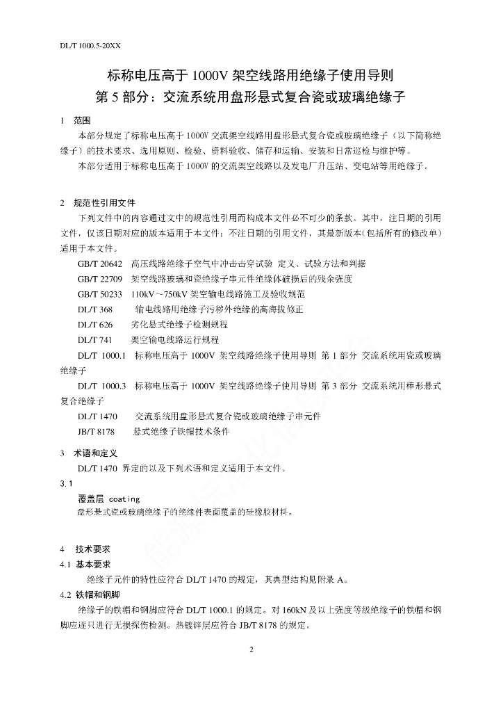 DL/T 1000.5-2021 标称电压高于1000V架空线路绝缘子使用导则 第5部分:交流系统用盘形悬式复合瓷或玻璃绝缘子