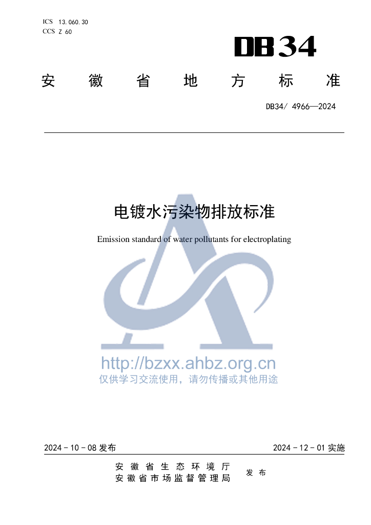 DB34/ 4966-2024 电镀水污染物排放标准